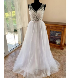 Svatební šaty na zip a knoflíky. Šití pouze na míru (doba doručení kolem 6-8 týdnů při šití na míru) . Do poznámky přidejte Vaše míry dle instrukcí ODKAZ .Při objednání na míru akceptujeme pouze platby předem (převodem / GoPay). Šití max. do vel. 46, větší velikosti za příplatek