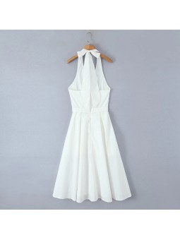 Elegantní bílé maxi šaty se zavazováním za krk. Zapínání na zip. Šaty mají kapsy. Materiál: směs bavlny s polyesterem Více fotografií naleznete v jiné barvě - Odkaz