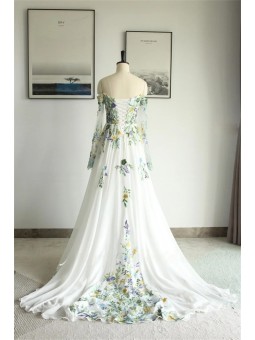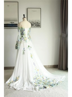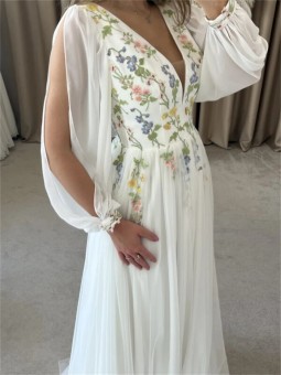 Květinové šifónové svatební šaty s dlouhým rukávem na zip. Při šití na míru lze model poupravit. Možné šití na míru za příplatek +500,- Kč (doba doručení kolem 6-8 týdnů při šití na míru) . Pro volbu šití na míru zvolte velikost NA MÍRU a přidejte Vaše míry dle instrukcí ODKAZ ZDE Při objednání...
