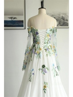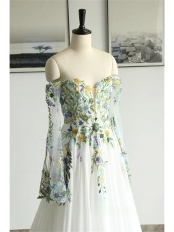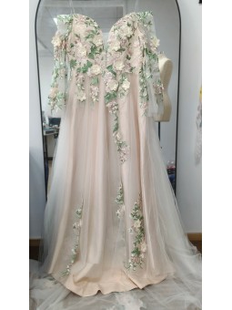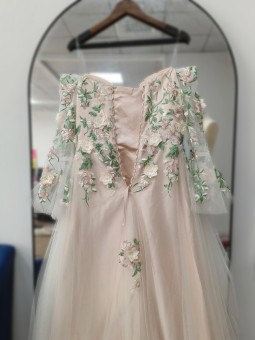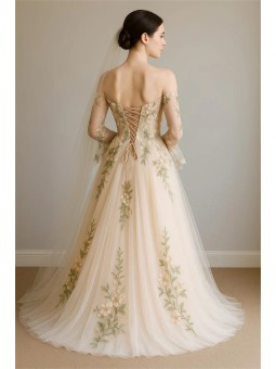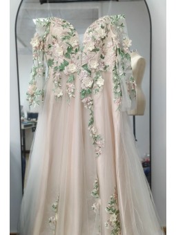 Květinové tylové svatební šaty se spadlými dlouhými rukávy. Na šněrovačku. Při šití na míru lze model poupravit a ušít v jiné barvě, pro změny nás nejdříve kontaktujte. Možné šití na míru za příplatek +500,- Kč (doba doručení kolem 6-8 týdnů při šití na míru) . Pro volbu šití na míru zvolte...