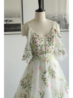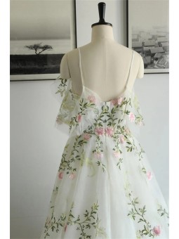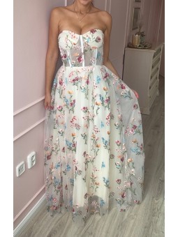 Okouzlující tylové šaty, které v sobě spojují lehkost a romantiku. Živůtek je zdoben jemnou pastelovou květinovou výšivkou v růžovo-zelených tónech, která plynule přechází do sukně a vytváří nádherný přirozený efekt. Silueta typu A s volnou sukní z lehkého tylu je pohodlná a lichotí každé...