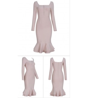 Party šaty - koktejlky bodycon (na tělo). Ozdobné knoflíky v přední části topu, hranatý výstřih. Zapínání na zip. Sukně je střihu mořská panna. Materiál: spandex