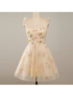Květinové tylové šaty v šampaň barvě na zip. Možné šití na míru za příplatek +500,- Kč (doba doručení kolem 6-8 týdnů při šití na míru) . Pro volbu šití na míru zvolte velikost NA MÍRU a přidejte Vaše míry dle instrukcí ODKAZ ZDE  Při objednání na míru akceptujeme pouze platby předem (převodem/...