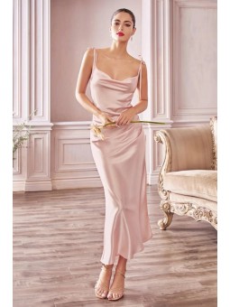 Midi saténové šaty jsou vyrobeny ze saténu. S rozparkem na boku. Zapínání na zip v boku. Vázací ramínka - délka je počítaná s ramínky.  Skladem vel. 40 v modré.