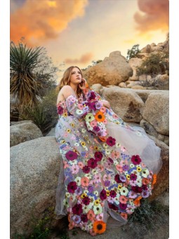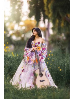 Květinové tylové šaty na zip s rozšířenými rukávy - jsou zvlášť, lze nosit i bez nich.   Možné šití na míru za příplatek +500,- Kč (doba doručení kolem 6-8 týdnů při šití na míru) . Pro volbu šití na míru zvolte velikost NA MÍRU a přidejte Vaše míry dle instrukcí ODKAZ ZDE  Při objednání na míru...