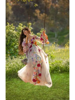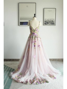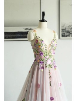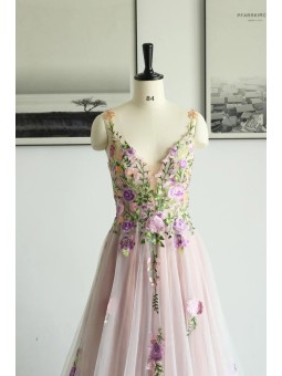 Romantické tylové šaty s 3D květinovou výšivkou – pudrově růžové Objevte kouzlo romantiky v těchto jedinečných šatech, které okouzlí na první pohled. Pudrově růžový tyl je zdoben bohatou 3D květinovou výšivkou v jemných pastelových tónech fialové, růžové a žluté. Šaty mají hlubší výstřih do...