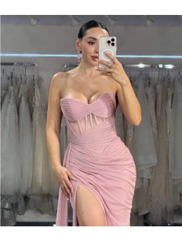 Elegantní pudrově růžové večerní šaty s korzetovým živůtkem a vysokým rozparkem. Top je na šněrovačku. Při šití na míru lze model poupravit a ušít v jiné barvě, pro změny nás nejdříve kontaktujte. Možné šití na míru za příplatek +500,- Kč (doba doručení kolem 6-8 týdnů při šití na míru) . Pro...