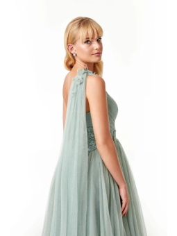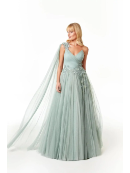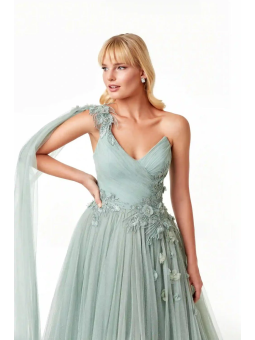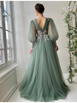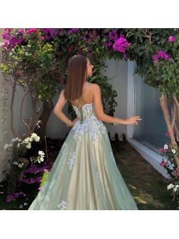 Staňte se středem pozornosti v těchto pohádkových šatech, které spojují romantiku a moderní eleganci. Jemný tyl v odstínu jemné šalvějové zelené působí něžně a vzdušně, zatímco korzet s hlubokým výstřihem do „V“ zvýrazní dekolt a pas. Balónové průsvitné rukávy dodávají šatům éterický nádech....