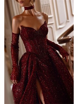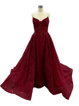 Luxusní večerní šaty s flitry Okouzlující dlouhé večerní šaty, ve kterých zazáříte na plese, galavečeru i jiné slavnostní události. Šaty jsou ušité z látky zdobené třpytivými flitry, které nádherně odrážejí světlo při každém pohybu. Korzetový střih s odhalenými rameny zvýrazňuje ženskou siluetu,...