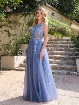 Romantické společenské šaty v princeznovském stylu, které si zamilujete na první pohled. Horní část zdobí jemná výšivka s květinovými motivy a decentními třpytkami, které krásně vyniknou na průhledném tylu. Originálně řešená záda s kulatým výstřihem dodávají šatům smyslnost. Bohatá sukně z...
