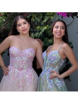 Romantické třpytivé společenské šaty s květinovou výšivkou – 2 styly Okouzlující společenské šaty, které zaujmou svým éterickým designem, jemnými barvami a květinovými detaily. Ideální volba na ples, maturitu či slavnostní příležitosti. Design: bohatě zdobený živůtek s květinovou výšivkou a...