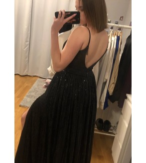 Třpytivé společenské šaty  s klasickou siluetou sukně do A. Šaty jsou na šněrovačku, ramena na zavázání. Vel. 34 skladem - díky šněrovačce velmi přízpůsobivé, vhodné pro vel 34 až 38 (na panně 38 focené)