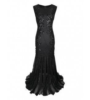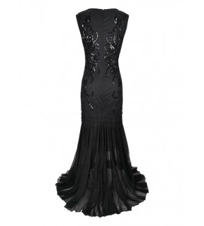 Vintage šaty zdobené flitry se sukní střihu mořské panny. Zapínání na zip