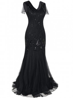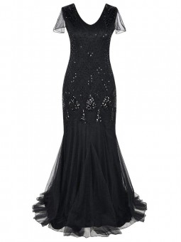 Vintage šaty zdobené flitry a korálky se sukní střihu mořské panny. Zapínání na zip