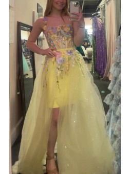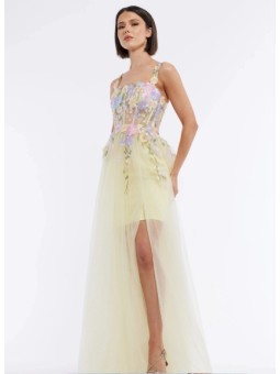 Tylové květinové šaty na zip.  Šaty mají odejímatelnou tylovou sukni, lze nosit i jako krátké. Vnitřní sukně je saténová. Šití na míru za příplatek +500,- Kč (doba doručení kolem 6-8 týdnů při šití na míru) . Pro volbu šití na míru zvolte velikost NA MÍRU a přidejte Vaše míry dle instrukcí ODKAZ...