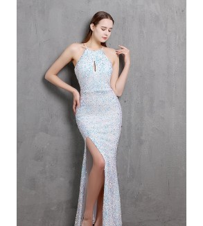 Flitrové večerní šaty s rozparkem. Na zip. Sukně střihu mořské panny. Materiál: spandex - elastické
