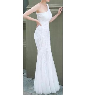 Společenské šaty na jedno rameno Střih: mořská panna Zapínání: na zip