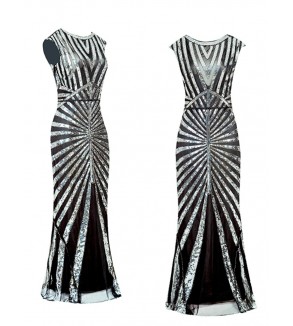 Vintage šaty zdobené flitry se sukní střihu mořské panny. Zapínání na zip
