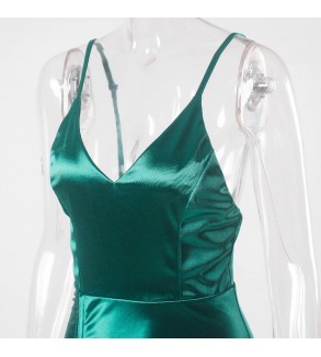 Saténové šaty na zip s rozparkem Skladem vel. XS tmavě zelená