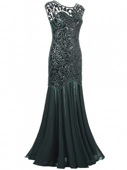 Vintage šaty zdobené flitry se sukní střihu mořské panny. Zapínání na zip