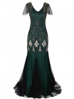 Vintage šaty zdobené flitry a korálky se sukní střihu mořské panny. Zapínání na zip