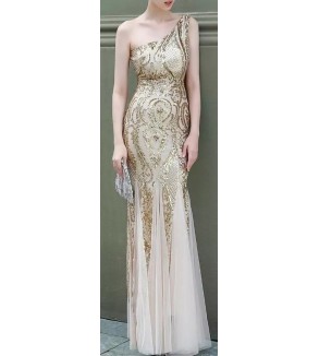 Společenské šaty na jedno rameno Střih: mořská panna Zapínání: na zip