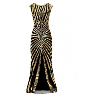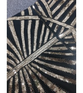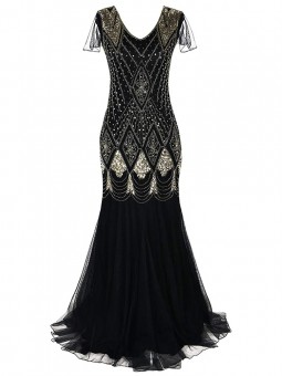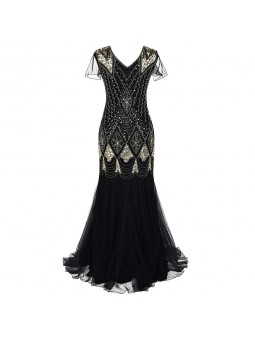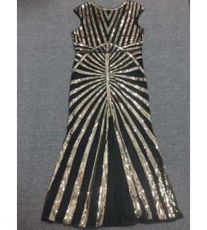 Vintage šaty zdobené flitry a korálky se sukní střihu mořské panny. Zapínání na zip