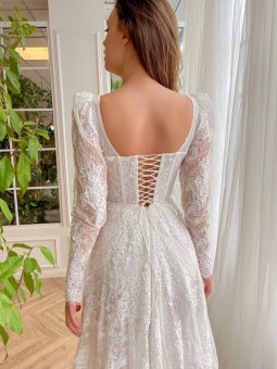 Svatební krajkové šaty s dlouhým rukávem na šněrovačku. Možné šití na míru za příplatek +500,- Kč (doba doručení kolem 6-8 týdnů při šití na míru) . Pro volbu šití na míru zvolte velikost NA MÍRU a přidejte Vaše míry dle instrukcí ODKAZ ZDE Při objednání na míru akceptujeme pouze platby předem...