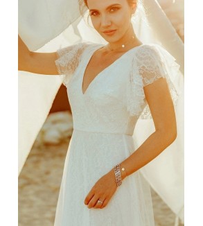 Svatební šaty na šněrovačku v boho stylu. Možné šití na míru za příplatek +300,- Kč (doba doručení kolem 6-8 týdnů při šití na míru) . Pro volbu šití na míru zadejte - šití na míru ANO a přidejte Vaše míry: prsa,obvod pod prsy, pas, boky, délka šatů od ramen na zem, výška podpatků a Vaše výška....
