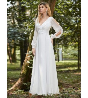 Jednoduché svatební šaty s V výstřihem. Zapínání na zip