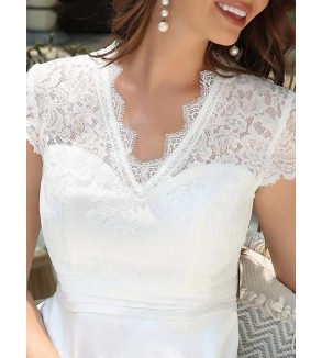 Jednoduché svatební šaty nebo popůlnočky. S ozdobným dírkováním - průstřihy okolo výstřihu a v pase Velikost pouze v 36 a 38 - doprodej tohoto modelu
