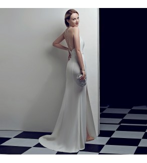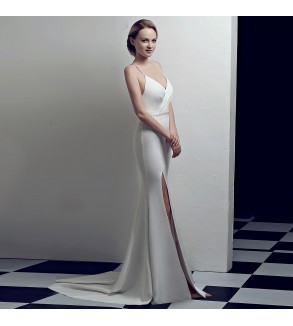 Saténové šaty s rozparkem Zapínání na zip Skladem: velikost 34 a 46 v bílé