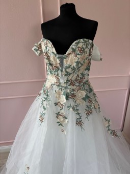 Svatební šaty s barevnou květinovou výšivkou Okouzlující svatební šaty Marrisa jsou ideální pro nevěsty, které hledají romantický, ale zároveň originální vzhled. Bohatá tylová sukně se třpytivým leskem a vlečkou dodává slavnostní nádech, zatímco živůtek s hlubokým výstřihem a tenkými ramínky...