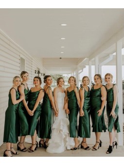 Midi saténové šaty jsou vyrobeny ze saténu. S rozparkem na boku. Zapínání na zip v boku. Vázací ramínka - délka je počítaná s ramínky. Skladem vel. 40 v modré.