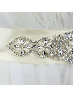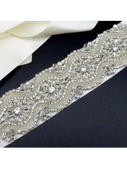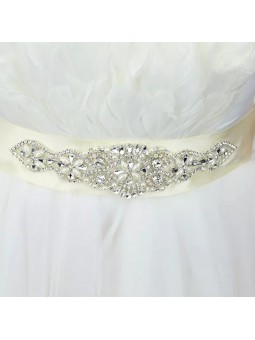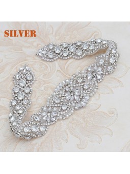 Velikost kamínkové aplikace :50 x 1cm Délka stuhy 200cm, šířka 1 cm Materiály: AAA kamínky a saténová stuha Barvy: Rose gold krystaly s ivory stuhou Zlaté krystaly s ivory stuhou Stříbrné krystaly s bílou stuhou