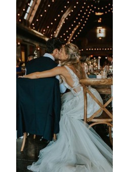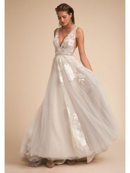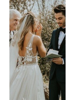 Tylové svatební šaty s květinovou krajkou s V výstřihem. Zapínání na zip. V rámci šití na míru lze ušít i na šněrovačku. Možné šití na míru za příplatek +500,- Kč (doba doručení kolem 6-8 týdnů při šití na míru) . Pro volbu šití na míru zvolte velikost NA MÍRU a přidejte Vaše míry dle instrukcí...