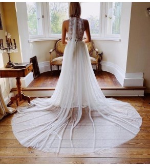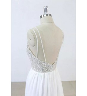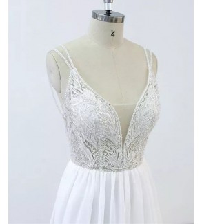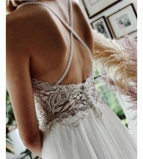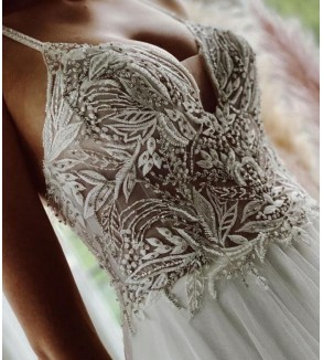 Boho svatební šaty mají hladkou sukni. Zdobené perličkami a krajkovými aplikacemi. Šaty jsou šité na zip a knoflíčky. Všité vycpávky. Šití pouze na míru (doba doručení kolem 6-8 týdnů při šití na míru) . Do poznámky přidejte Vaše míry dle instrukcí ODKAZ .Při objednání na míru akceptujeme pouze...