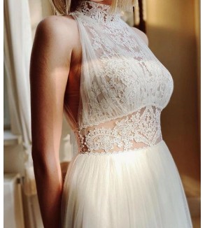 Svatební šaty se stojáčkem. Na zip. Šití pouze na míru (doba doručení kolem 6-8 týdnů při šití na míru) . Do poznámky přidejte Vaše míry dle instrukcí odkaz .Při objednání na míru akceptujeme pouze platby předem (převodem / GoPay). Šití max. do vel. 46, větší velikosti za příplatek Na...