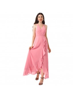 Šaty mají klasickou siluetu áčkového střihu s topem zdobeným krajkou a výstřihem do V. Materiál: šifón Zapínání: na zip na zádech Barva: pudrová růžová Některé velikosti vyprodány