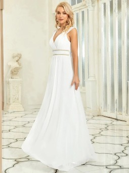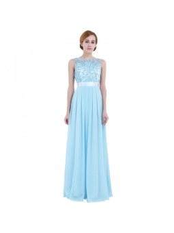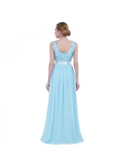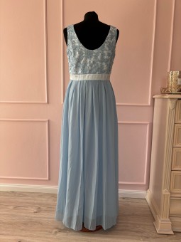 Krajkové společenské šaty v délce až po zem jsou jedinečně doplněny širokým páskem lichotícím postavě, který zvýrazňuje linii pasu. Záda střižená ve tvaru V. Zapínání: Vzadu na skrytý zip. Šaty lze vzít bez podprsenky, jsou v nich vyspávky a podšívka. Látka: šifón a krajka