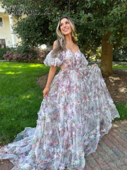 Tylové květinové šaty na zip. Šaty mají odejímatelnou tylovou sukni, lze nosit i jako krátké. Vnitřní sukně je saténová. Šití na míru za příplatek +500,- Kč (doba doručení kolem 6-8 týdnů při šití na míru) . Pro volbu šití na míru zvolte velikost NA MÍRU a přidejte Vaše míry dle instrukcí ODKAZ...