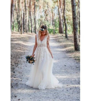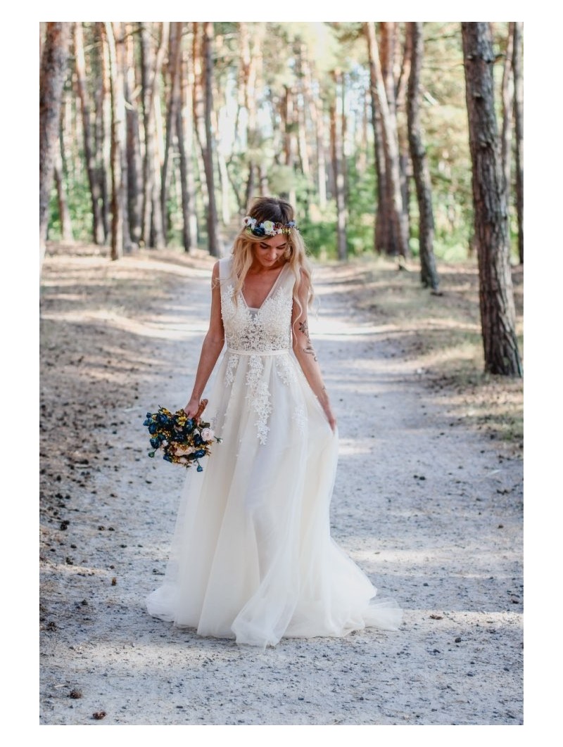 Střih: princeznovská silueta s bohatou tylovou sukní, která působí vzdušně a romanticky.