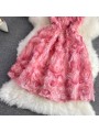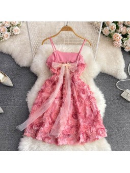 Krátké šaty s 3D růžemi na šněrovačku.
