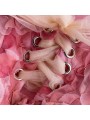 Velikost vybírejte na základě rozměrů v tabulce. Prsa jsou uváděna při největším stažení šněrovačky. Šaty jsou menší, volte spíše větší velikost než běžně nosíte.