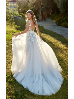 Tylové svatební šaty s květinovou krajkou s V výstřihem. Zapínání na zip. V rámci šití na míru lze ušít i na šněrovačku. Možné šití na míru za příplatek +500,- Kč (doba doručení kolem 6-8 týdnů při šití na míru) . Pro volbu šití na míru zvolte velikost NA MÍRU a přidejte Vaše míry dle instrukcí...