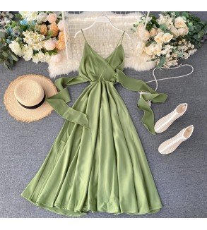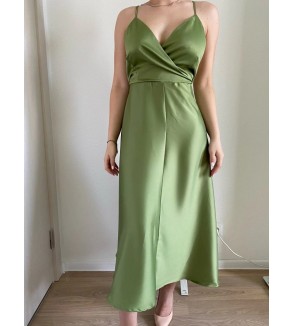 Saténové šaty s rozparkem. Zapínání na zip + zavazování Modré pouze ve vel. 38