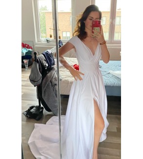 Svatební šaty s rozparkem a kapsami. Zapínání na zip a knoflíky. Šití pouze na míru (doba doručení kolem 6-8 týdnů při šití na míru) . Do poznámky přidejte Vaše míry dle instrukcí Odkaz .Při objednání na míru akceptujeme pouze platby předem (převodem / GoPay). Šití max. do vel. 46, větší...