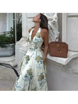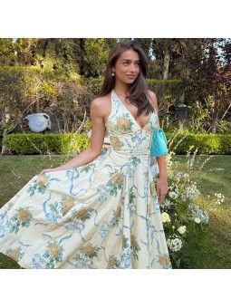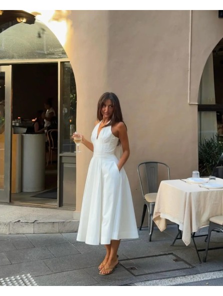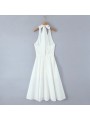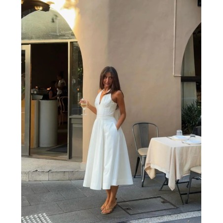 Elegantní bílé maxi šaty se zavazováním za krk. Zapínání na zip.