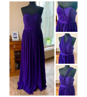Vysoce elegantní šaty pro všechny večerní příležitosti. Na šatech oceníte především jejich multifunkčnost, kdy na každé akci můžete mít jiné šaty. Doporučujeme šaty doplnit o výrazné šperky. Fialová barva vynikne nejvíce na brunetkách.