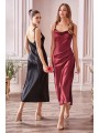 Midi saténové šaty jsou vyrobeny ze saténu. S rozparkem na boku. Zapínání na zip v boku.